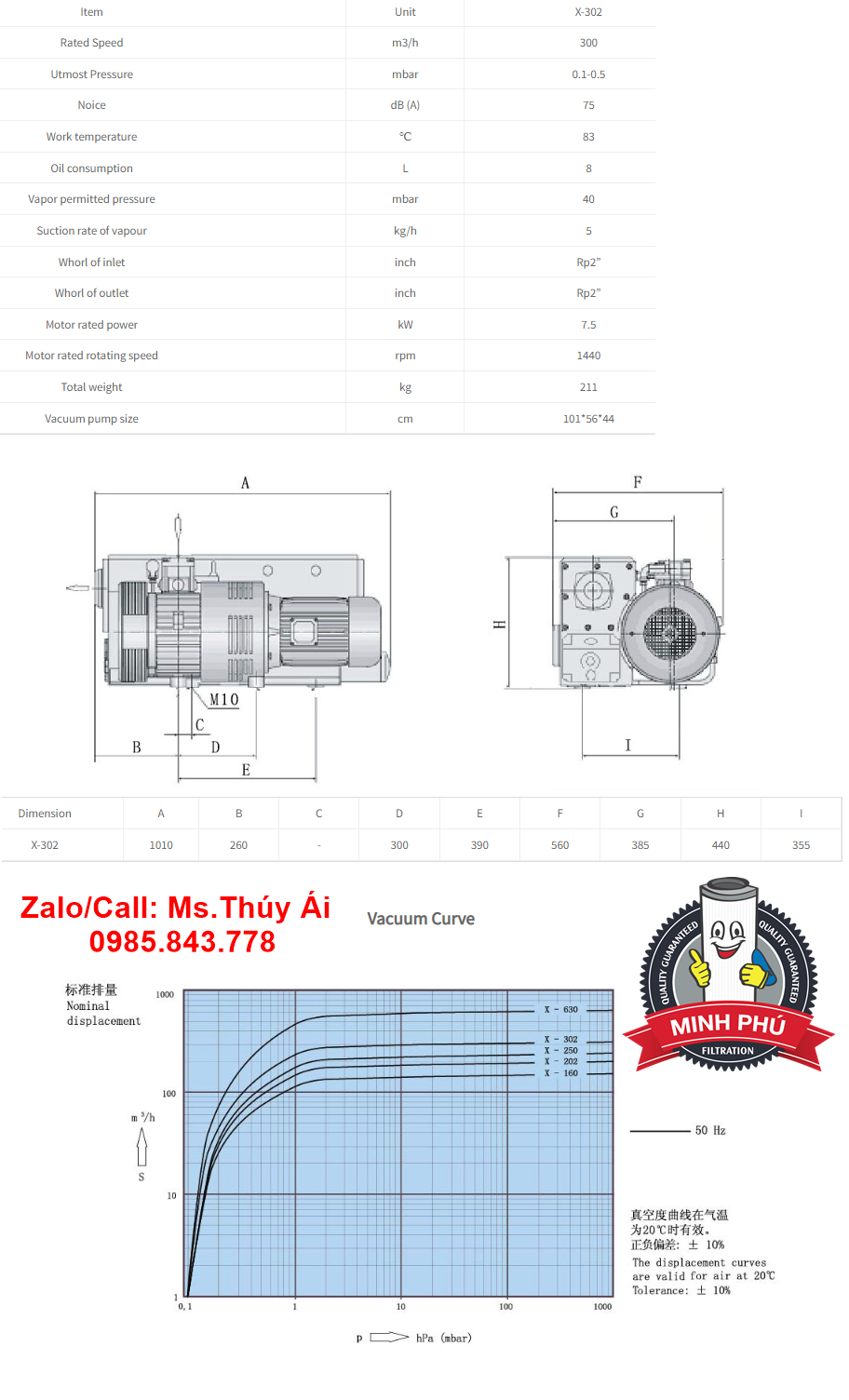 BƠM CHÂN KHÔNG X-302 -CTY MINH PHÚ -0985843778